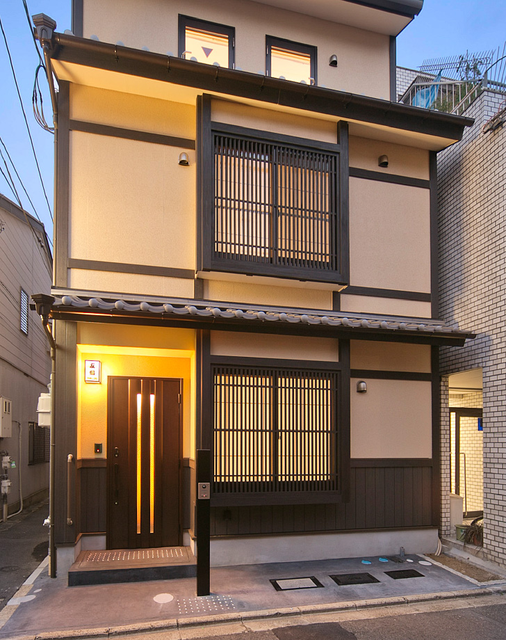 - 京都三条通りから白川沿い、京都らしい街並が残る地域に建つ、現代町家デザインの旅館です。伝統的なデザインを継承しつつ、構造・工法は現代に即した耐震工法3階建てSE構法・重量木骨の家です。